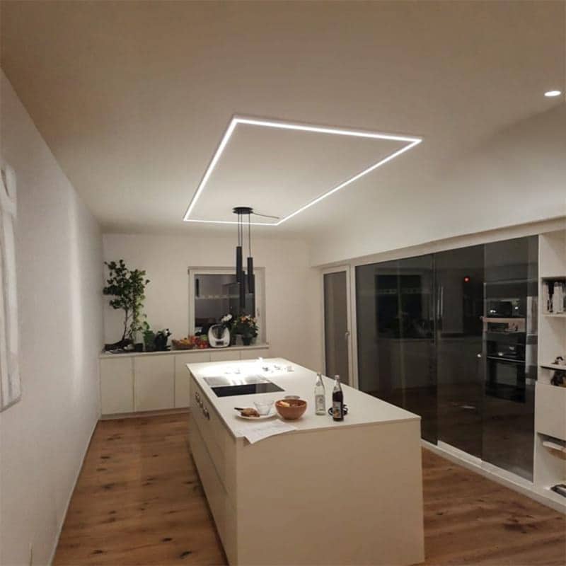 - قابل استفاده به صورت روکار: این پروفیل را میتوانید به راحتی به صورت روکار بر روی دیوار و سقف برای نورپردازی مستقیم و زیبا استفاده کنید.